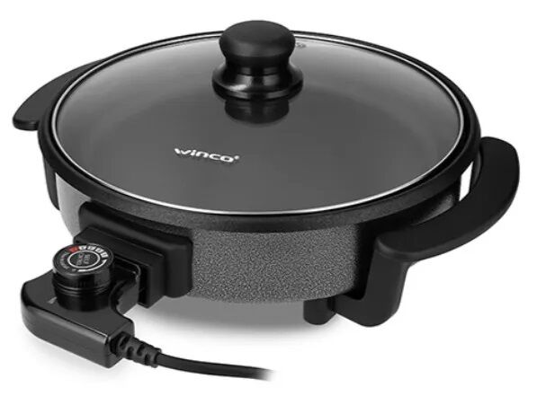 Cocina multiuso redonda de superficie anti-adherente termostato ajustable y extrable para facilitar la limpieza 5 niveles de coccin tapa de vidrio templado cocina sin humo ni olor. Potencia 1500W