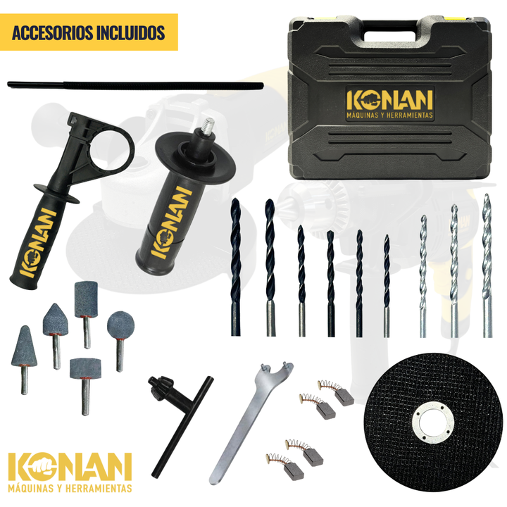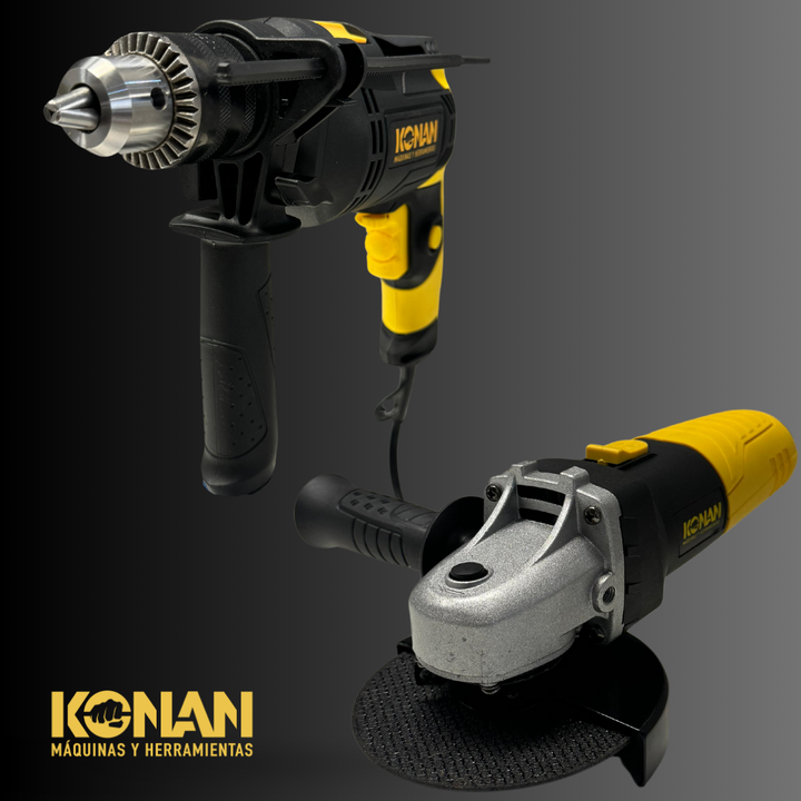 El combo amoladora + taladro KONAN es una herramienta indispensable para cualquier aficionado o profesional que necesite realizar una amplia variedad de tareas. Esta combinación te permite tener dos herramientas esenciales en una sola compra, lo que representa una gran economía y practicidad.