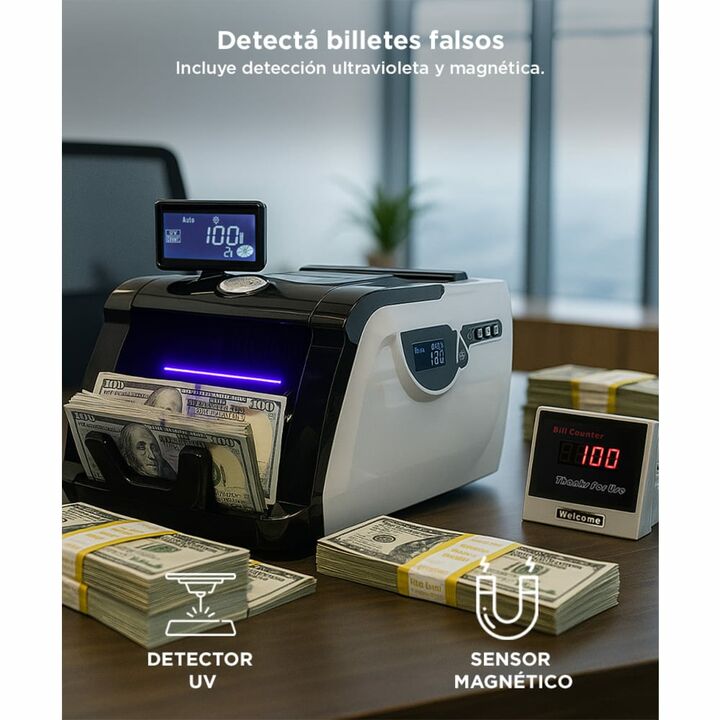 La Contadora de Billetes Gadnic es un insumo comercial imprescindible para cualquier negocio o local. La CONT0030 es un equipo robusto que cuenta billetes con precisión reduciendo el tiempo de trabajo y evitando pérdidas. Está equipada con una bandeja adaptable que cuenta hasta 1000 billetes por min...