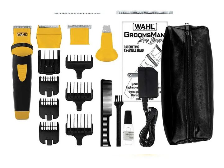 - Marca: WAHL - Modelo: GROOMSMAN SPORT ART. 9953-028 - Cantidad de cabezales: 4 - Es inalámbrico: Sí - Es lavable: No - Es apta para viaje: Sí - Tipo de alimentación: Batería - Cantidad de peines: 7 - Cantidad de posiciones: 6 - Potencia: 8 W - Incluye batería recargable: Sí - Tiempo de funcionamie...