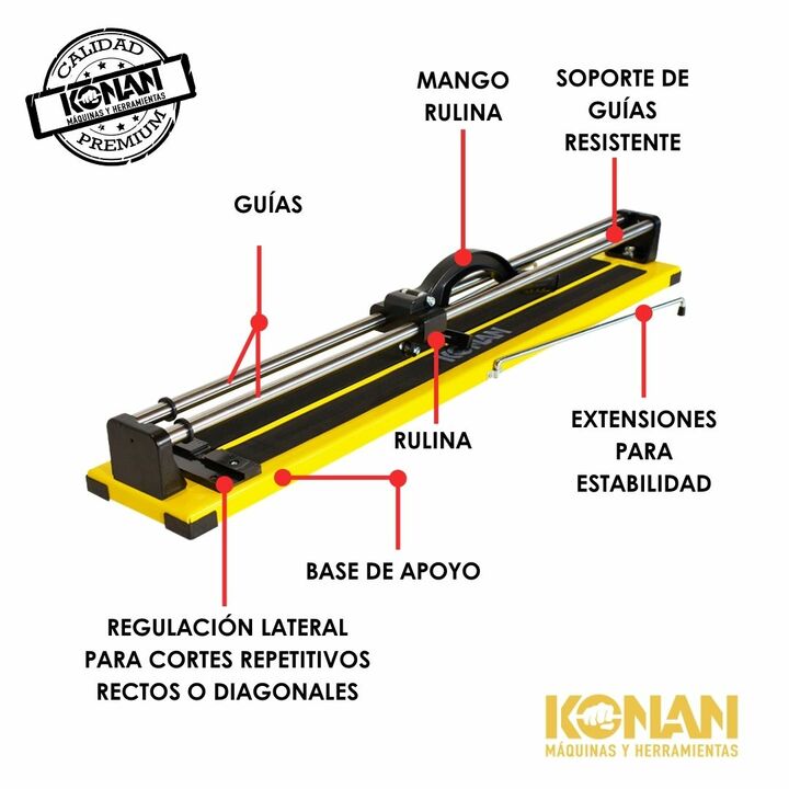 La Cortadora de Cerámica Profesional Konan de 90 cm es una herramienta manual diseñada para trabajos exigentes de instalación de pisos y revestimientos. Con una capacidad de corte de hasta 90 cm, permite realizar cortes precisos en cerámicos, porcel...