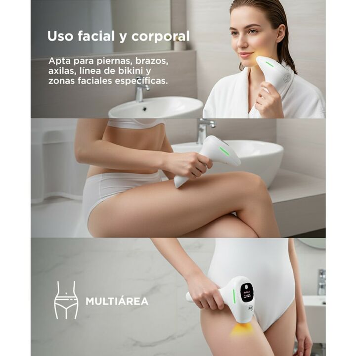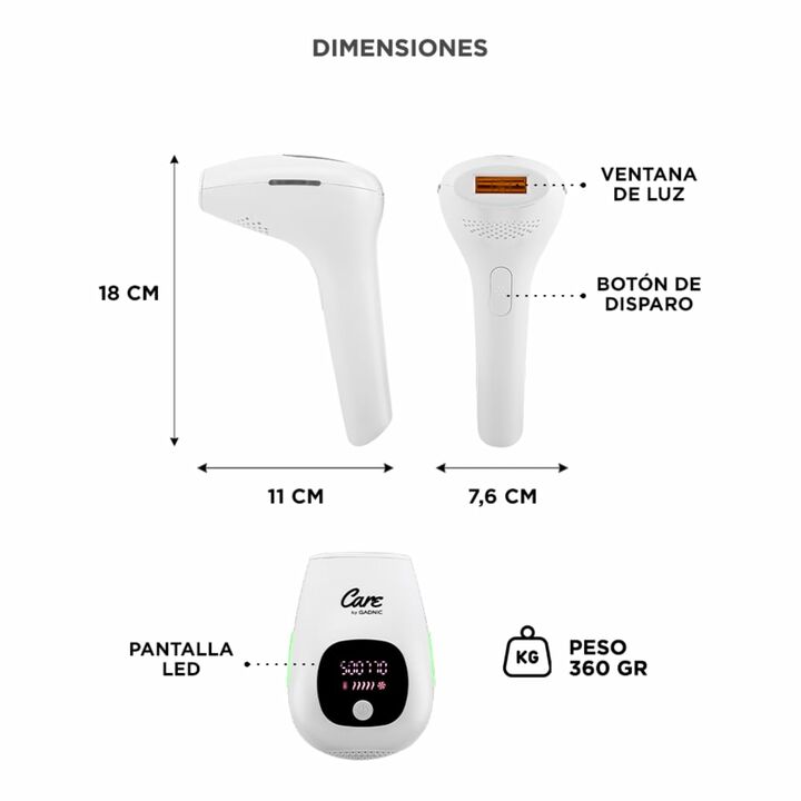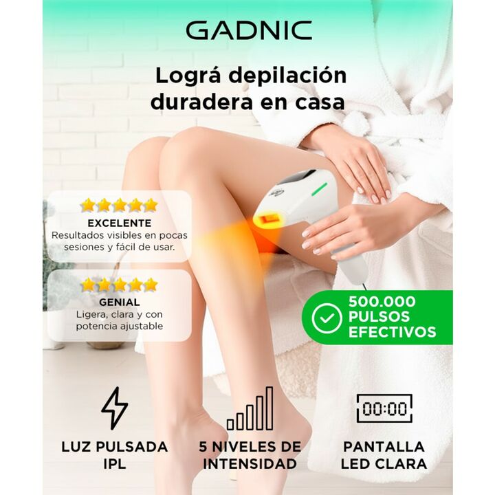 ¡Nueva depiladora laser IPL990KP By Gadnic! La depiladora laser IPL990KP con tecnología de luz pulsada trabaja en 5 niveles de intensidad y da resultados efectivos en 8 semanas de uso. ¡La depilación puede ser segura y sin dolor! Esta tecnología trabaja sobre el folículo y debilita la fuerza del vel...