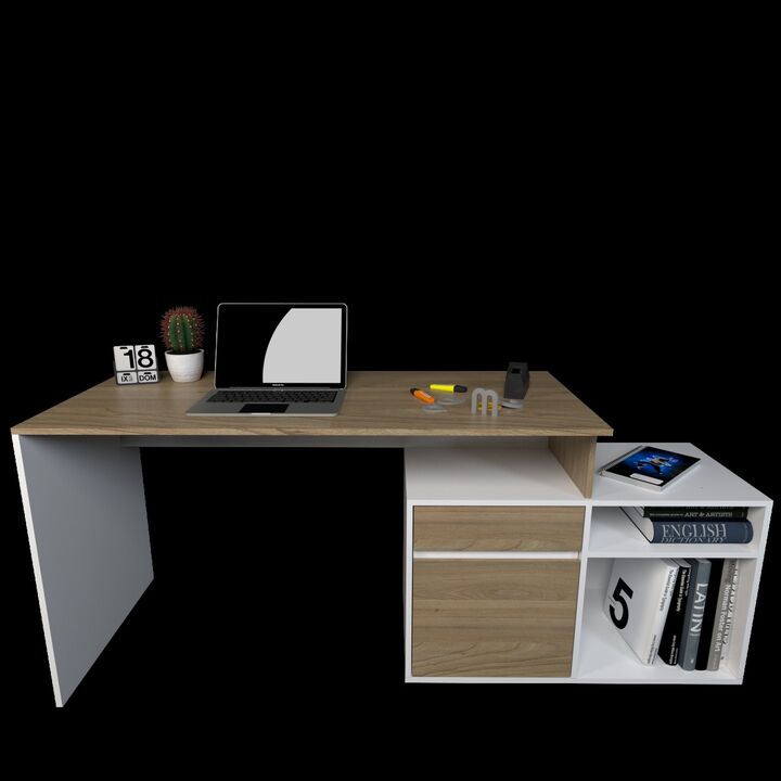 El escritorio 3048-COE Olmo|Everest ofrece un diseño práctico y moderno, ideal para oficina o estudio. Está fabricado en melamina de alta resistencia y cuenta con un mueble bajo con cajón y estante para optimizar el guardado. Su formato modular permite armarlo en línea o en L, adaptándose a distinto...