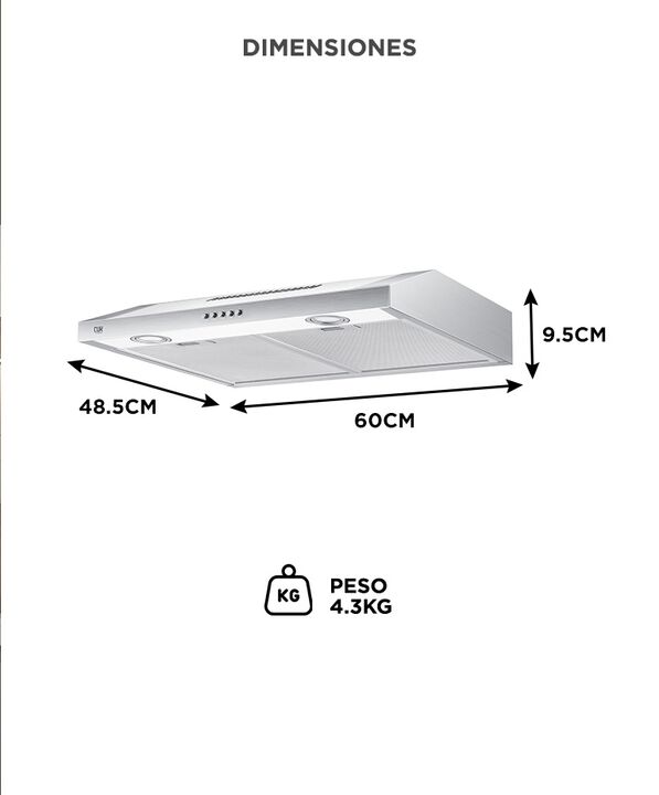 Extractor De Cocina Cuk By Gadnic EXT21450 100W Doble Filtro Aluminio 2 Luces LED Blanco