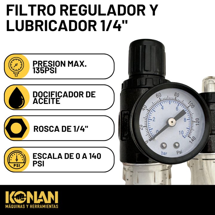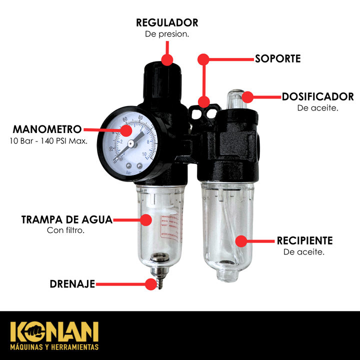 Filtro Aire Compresor con Regulador y Lubricador KAF/02 Konan