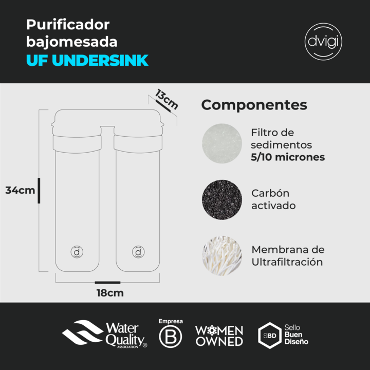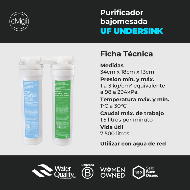 Filtro Purificador de Agua BAJO MESADA ULTRAFILTRACIÓN Dvigi