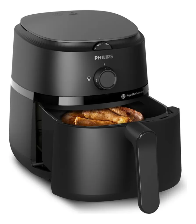 La Airfryer Philips NA120/00 de 4,2 litros incorpora la avanzada Tecnología Rapid Air, que permite cocinar alimentos crujientes por fuera y tiernos por dentro, usando mucho menos aceite que una freidora tradicional. Su diseño cuenta con un canasto removible y superficie antiadherente para facilitar ...