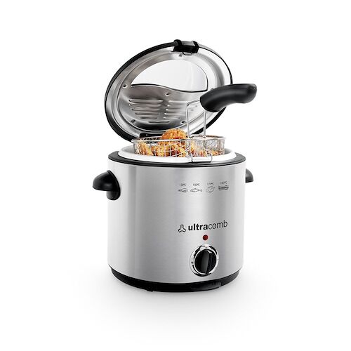 Tambin pueden prepararse pastas consoms etc.Potencia 1000W.Capacidad Mxima 15 litros.Termostato variable hasta 190C con corte de seguridad. Cuerpo exterior en acero inoxidable.Cestillo metlico freidor con asa desmontable.Luz piloto indicadora de funcionamiento.Tapa rebatible con ventana y filtro par...