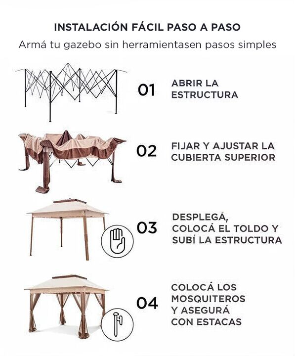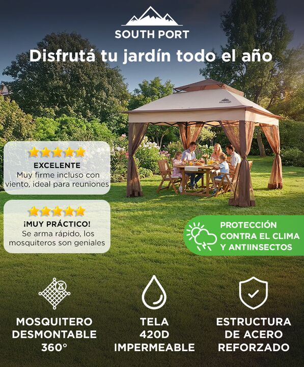 ESPACIO FUNCIONAL PARA EXTERIOR El gazebo Gadnic 3x3 está diseñado para crear un área protegida en jardín, patio o terraza. Su estructura de acero plegable brinda soporte firme durante el uso. Permite organizar reuniones familiares o encuentros sociales al aire libre. El formato amplio genera sombra...