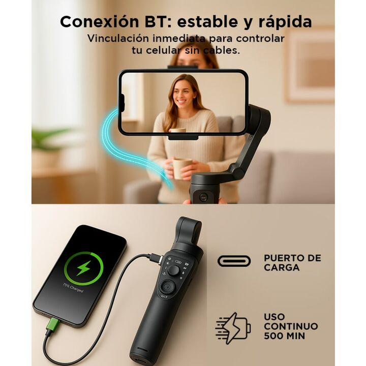 El Estabilizador Celular Gadnic es la herramienta ideal para quienes buscan capturar videos nítidos y estables con su smartphone. Con una batería de larga duración, hasta 500 minutos de grabación continua, y una capacidad de ajuste versátil para dispositivos de hasta 7.72” de tamaño, este estabiliza...