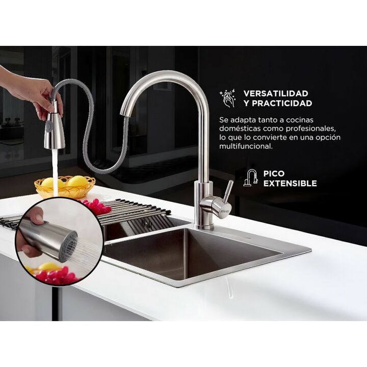 La grifería de cocina Gadnic es la opción ideal para quienes buscan combinar funcionalidad, durabilidad y estilo en su espacio. Fabricada en acero inoxidable de alta calidad y con un acabado cromado, este grifo aporta un toque moderno y elegante a cualquier cocina, ya sea en el hogar o en un ambient...