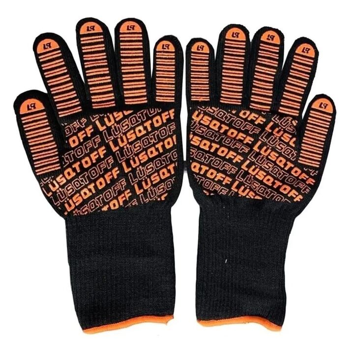 Soporta temperaturas hasta 800 F Material interior suave Flexibilidad 5 dedos Diseo sin costura con silicona antideslizante Cubre hasta la mueca Peso 0.26kg Se puede usar en la mano izquierda o derecha y cubre hasta la mueca. Fcil de almacenar con diseo de cuerda para colgar. ADVERTENCIA N...