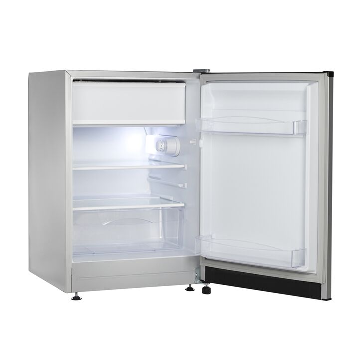 Heladera bajo mesada cíclica con congelador. Eficiencia energética A. Color plata. Gas ecológico R600a. Capacidad bruta 120 litros. Capacidad neta 107 litros. Deshielo manual. Estantes de vidrio templado. Anaqueles en contrapuerta. Cajón para frutas y verduras. Luz LED. Origen Argentina.