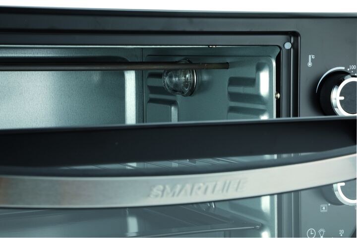 Este Horno Eléctrico de Convección SL-TO0060PN te ofrece una capacidad de 60 litros y 5 opciones de cocción para que prepares tus platos favoritos. Cuenta con luz interior para que puedas controlar fácilmente el estado de tus comidas. Podrás ajustar la temperatura entre 100°C y 250°C y programar el ...