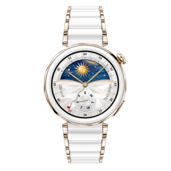 Marca Huawei Dimensiones 42.49 mm × 42.49 mm × 9.6 mm Tamaño de la muñeca 120-190 mm (Blanco Cerámico: 130~190 mm) Peso Aproximadamente 44 g (sin la correa) Altavoz Compatible Microfono Compatible Sensores Sensor de acelerómetro Sensor de giroscopio Sensor de magnetómetro Sensor óptico de frecuencia...