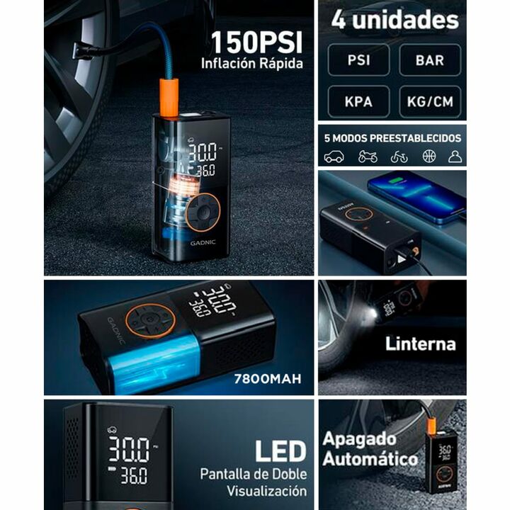 Descubrí la libertad de inflar con total conveniencia con nuestro inflador inalámbrico de última generación. La libertad inalámbrica es tuya con la capacidad inalámbrica incorporada, permitiéndote inflar tus neumáticos, juguetes inflables o equipamiento deportivo sin restricciones de cables. Además,...