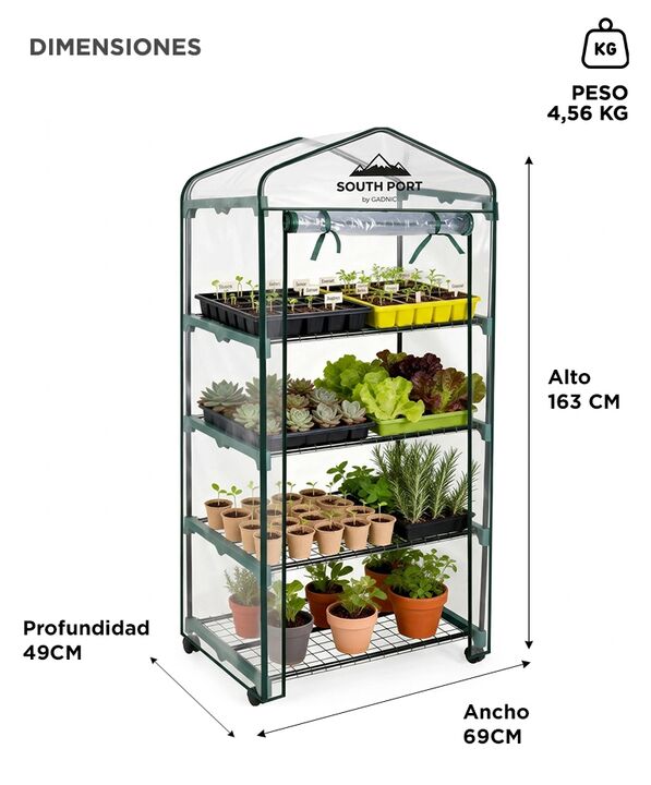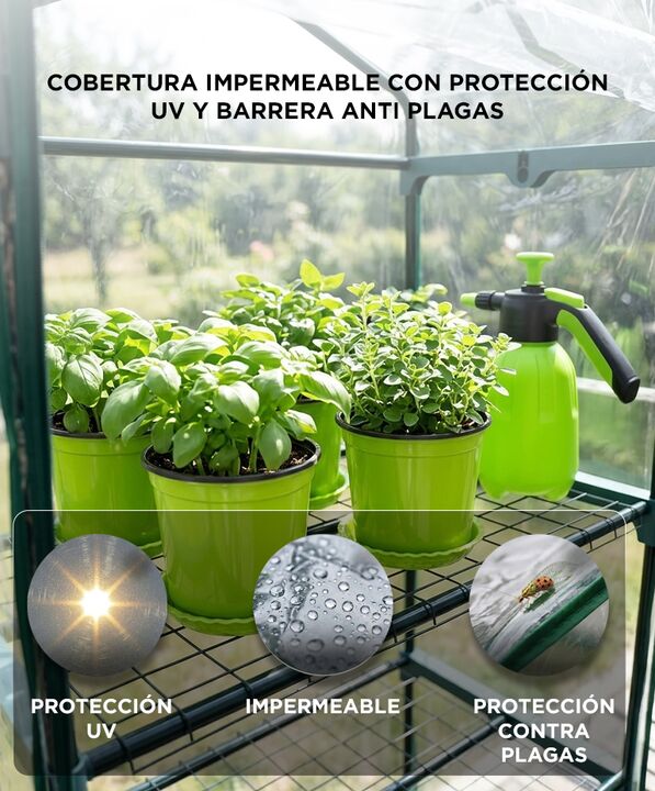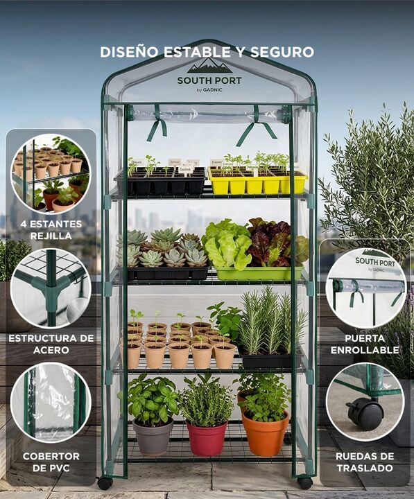 Cultivá durante todo el año con protección para tus plantas: El invernadero South Port INV01 crea un ambiente controlado que ayuda a proteger plantas y plantines frente al frío, viento o lluvia. Su cubierta transparente permite mantener la luz natural mientras conserva el microclima necesario para e...