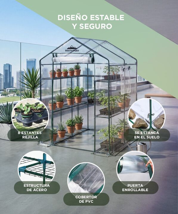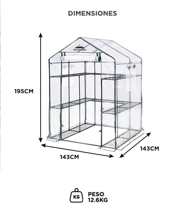 Estructura reforzada para mayor estabilidad: El Invernadero South Port by Gadnic INV04 cuenta con estructura metálica tubular y conectores firmes que brindan estabilidad superior frente a viento moderado. Ideal para uso exterior en patio o jardín. Diseño transitable con amplio espacio interior: Su f...