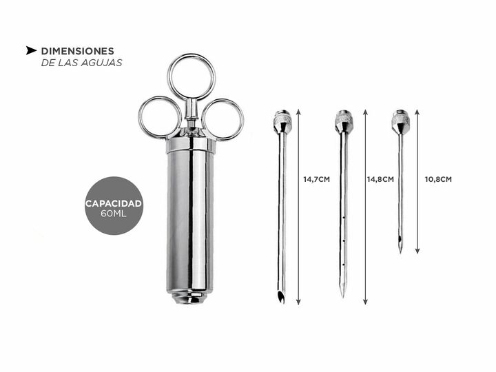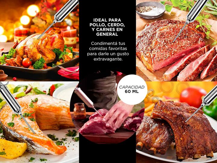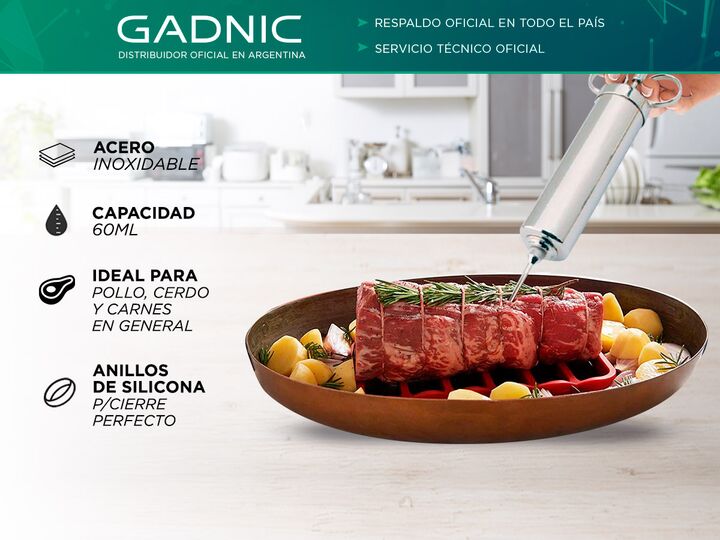 ¡Gadnic presenta su nueva linea de Jeringa Gastronómica! Esta Jeringa es ideal para el pollo, cerdo o cualquier tipo de carne. Gracias a su capacidad de 60 ml vas a poder condimentar tus comidas favoritas para darle un gusto extravagante. Especificaciones Material: Acero inoxidable Uso: Inyector de ...