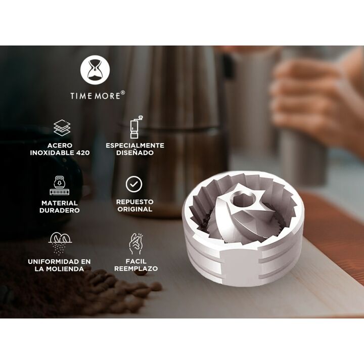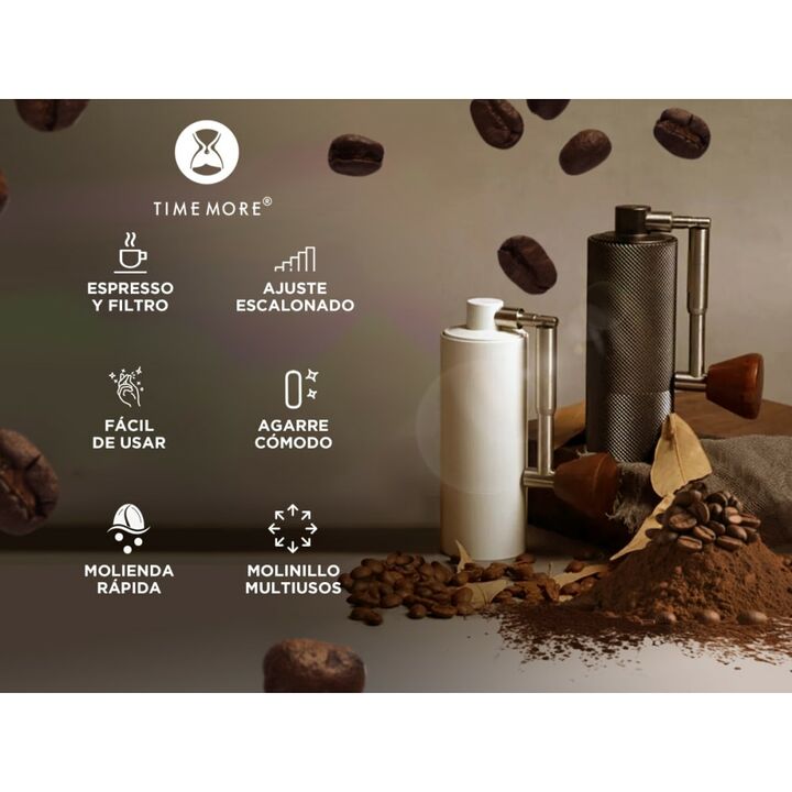 Molinillo de Café Timemore Manual: Capacidad: 20-25g Configuraciones de molienda: 35 (cerveza turca a fría+) Materiales: Aluminio, Acero, Silicona Cuerpo y refuerzo: Aluminio fresado de 1 pieza Capacidad para: Espresso y filtro Ajuste de molienda: Escalonado Cuerpo texturizado: Para un fácil agarre ...