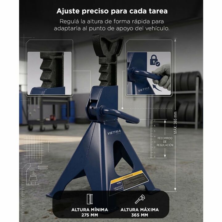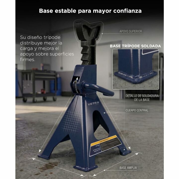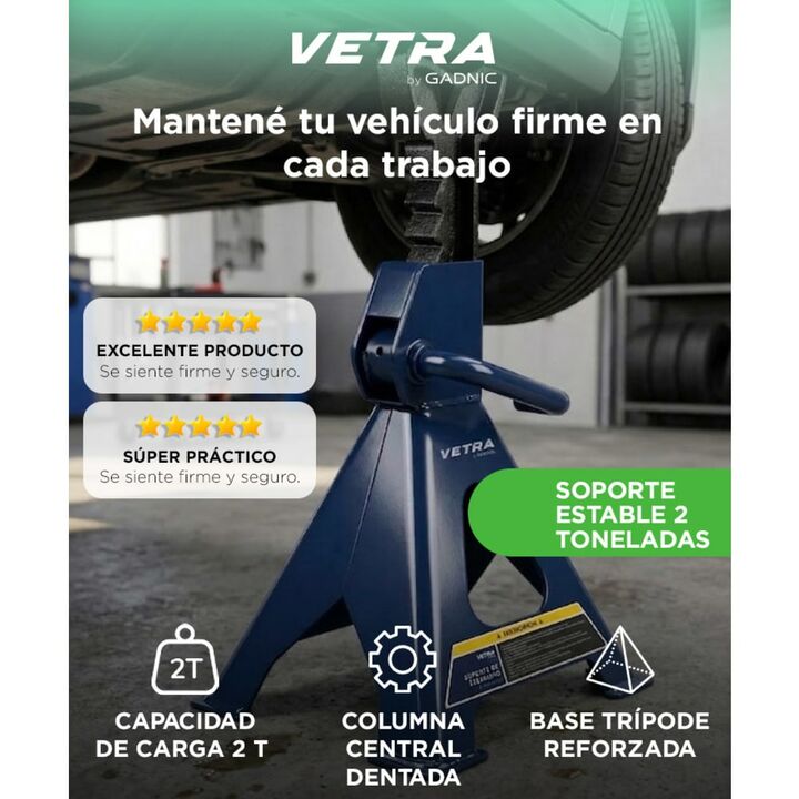 Seguridad En Cada Trabajo Este soporte caballete Gadnic Vetra esta diseñado para brindar maxima seguridad durante trabajos de mantenimiento vehicular. Su capacidad de 2 toneladas permite sostener autos de forma confiable. Es fundamental utilizarlo en pares para distribuir correctamente la carga. Su ...