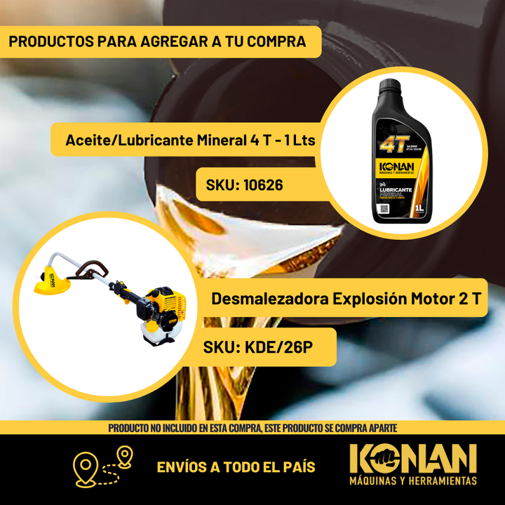 El aceite lubricante para cadena de motosierra Konan 1 L es un lubricante especialmente formulado para mantener la cadena y la barra de tu motosierra en óptimas condiciones de funcionamiento. Está pensado para proporcionar una película de acei...
