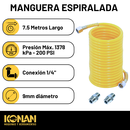 La Manguera Espiralada para Compresor Konan 1/4″ KME/7.5 es un accesorio práctico, ligero y esencial para tu sistema de aire comprimido. Está diseñada para conectar herramientas neumáticas a tu compresor con comodidad y sin enredos, ofreciendo alcance extendido y una mayor libertad de movimiento dur...