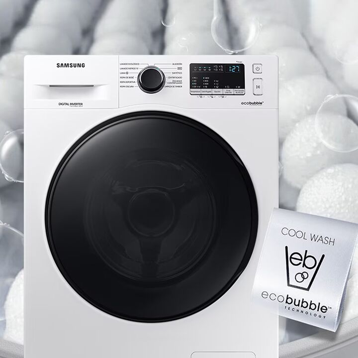 7 Kg | 1400 RPM | TECNOLOGIA ECOBUBBLE | DIGITAL INVERTER | LAVADO RÁPIDO 15 | A+++ PODEROSA ACCIÓN DE BURBUJAS La tecnología Eco Bubble™ ofrece un lavado poderoso, incluso a bajas temperaturas. El detergente es convertido en burbujas, que penetran más rápidamente en las telas y remueven las manchas...