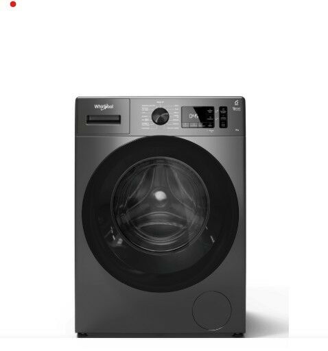 Lavarropas Whirlpool WNQ80BS, un modelo de alta gama que destaca por su motor Inverter y su acabado estético en color Titanium (Gris oscuro).