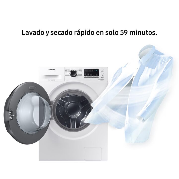 Lavado 9.5 Kg | Secado 6 Kg | 1400 RPM | ECOBUBBLE | AIRWASH | DIGITAL INVERTER | Lavado Rápido de 15 | Lavado y Secado Rápido en 59’ ¡CHAU TENDER! Con el nuevo programa de lavado y secado rápido en sólo 59 minutos. COMBATE LAS MANCHAS, PROTEGE LA TELA Disfrutá de una limpieza eficiente, incluso a b...