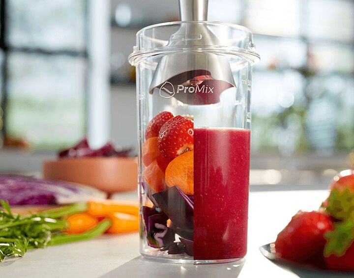 La nueva licuadora manual de la colección ProMix Viva con su gran variedad de accesorios lo ayuda a crear un sinfín de comidas y aperitivos saludables.