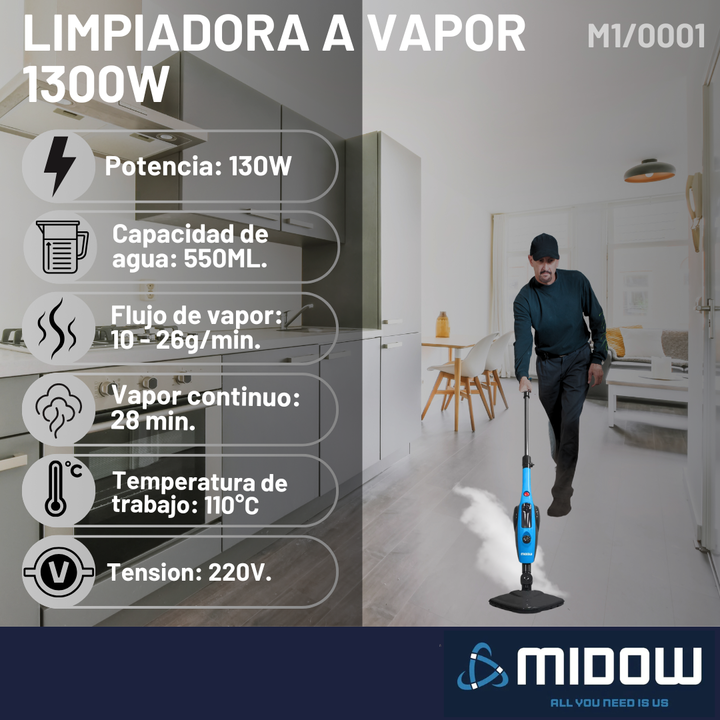 Limpiador A Vapor Mopa 12 En 1 Accesorios Múltiple MIDOW M1/0001