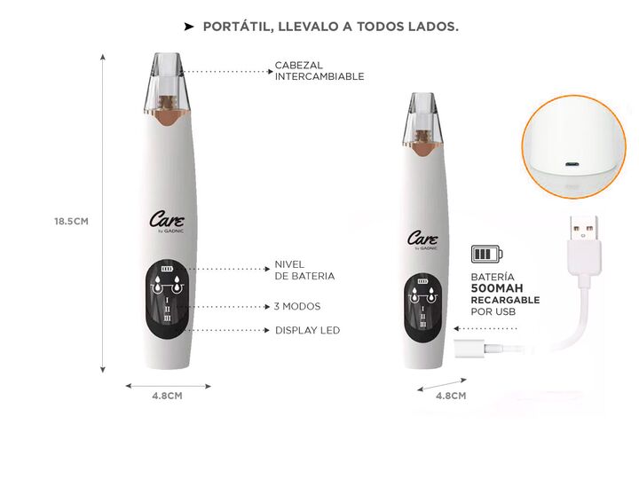 ¡Gadnic presenta su nueva línea de removedores de puntos negros! Se puede usar para eliminar profundamente los puntos negros, el acné y limpiar la cara. Es adecuado para el tratamiento de la piel seca, la piel flácida, la Piel opaca y también las arrugas. ¡Aumenta la irrigación sanguínea en tu piel!...