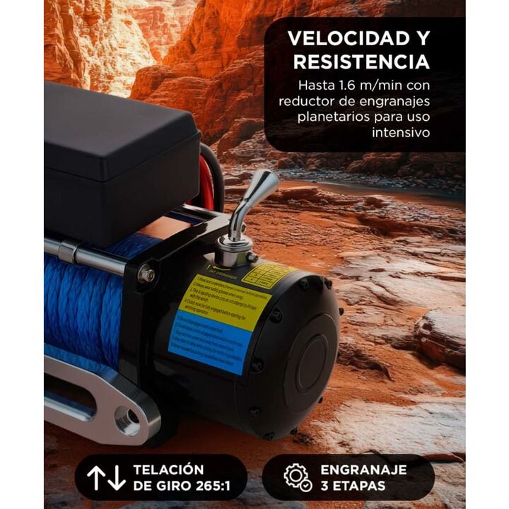 Tracción profesional para cargas pesadas Remolcá vehículos, equipos o cargas pesadas con una capacidad de hasta 13500 LBS (6136 kg) de fuerza continua. Ideal para off-road, talleres o rescate. Cable de plasma reforzado de 26 metros Más liviano que el cable de acero y con mayor resistencia. Evitá enr...