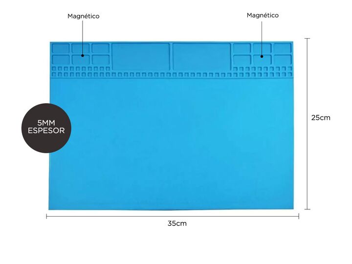 Protección de la superficie: la alfombrilla de soldadura de silicona protege tu espacio de trabajo de quemaduras resistiendo temperaturas de hasta 500° Espacio de trabajo limpio y ordenado: mantiene un entorno de trabajo limpio y organizado. Asegúrate de que no se pierden piezas pequeñas o herramien...