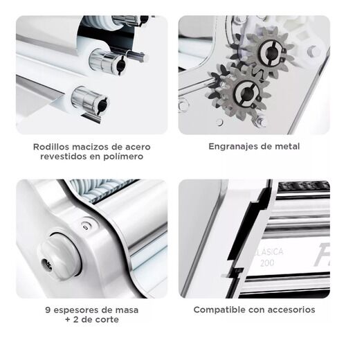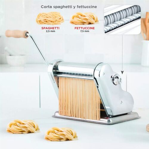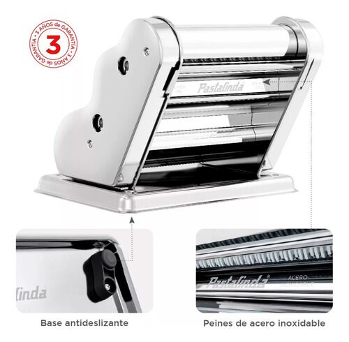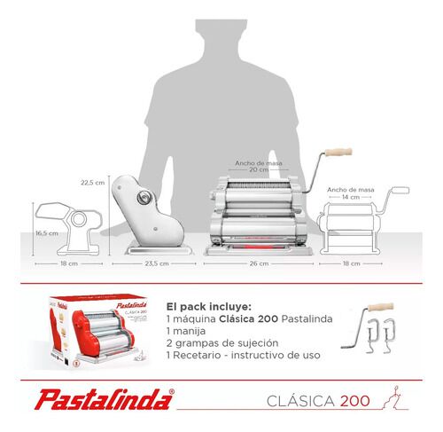 Pastalinda Clásica 200 Cromada - C200CROMADA Máquina elaboradora de Pasta Casera. Fácil de usar y con un diseño único y personalizado que te permitirá preparar mayor cantidad de pasta en menos tiempo, gracias a sus 20cm de ancho de masa Amasa y estira todo tipo de pasta, desde deliciosos tallarines ...