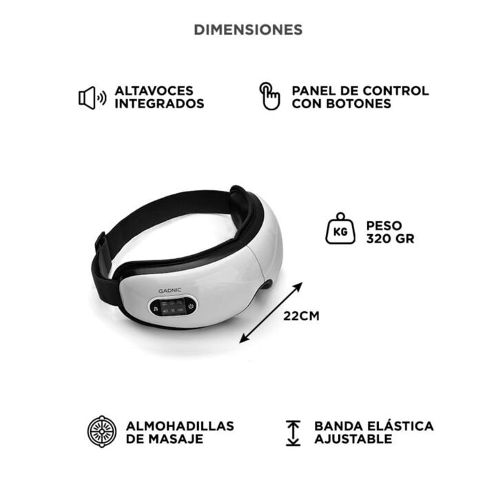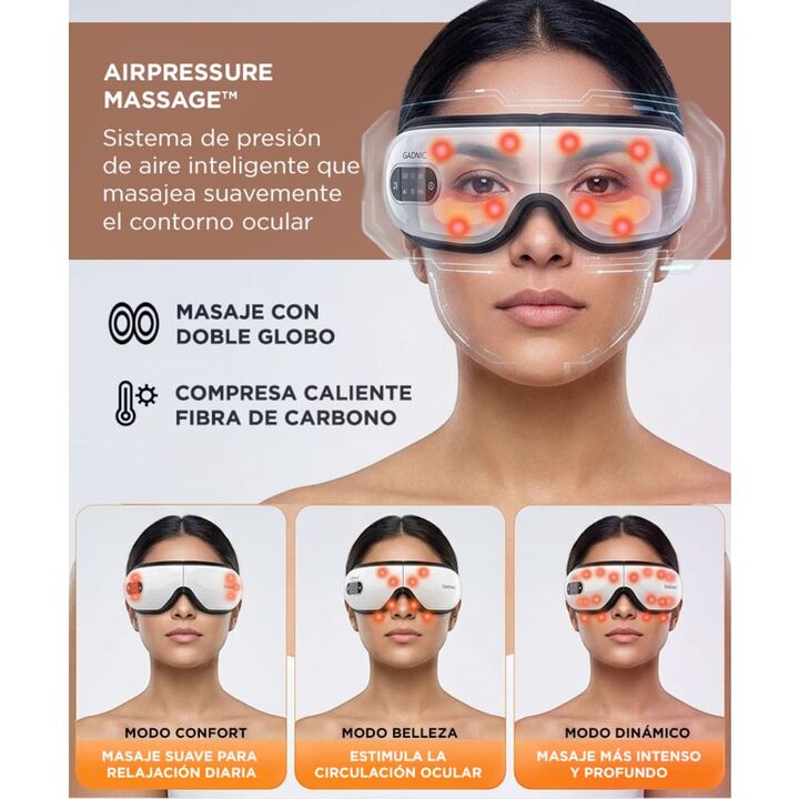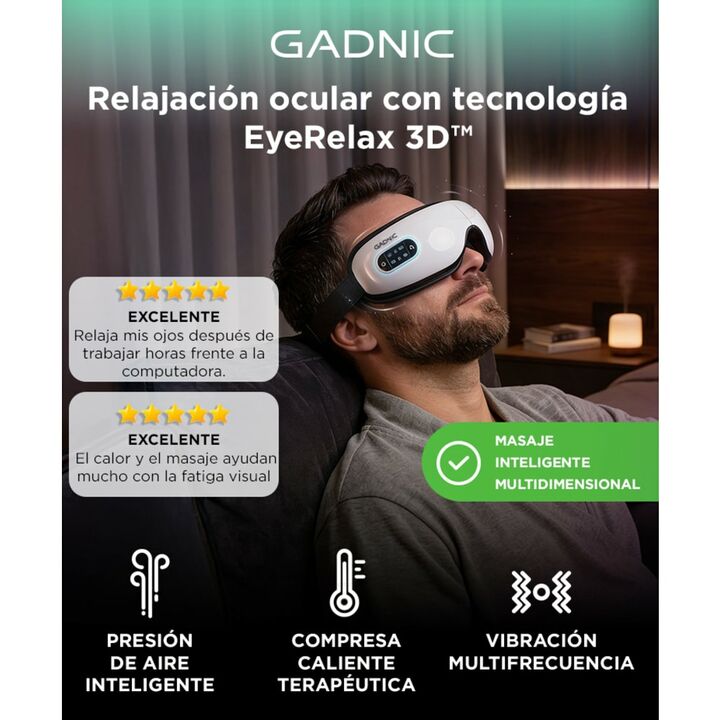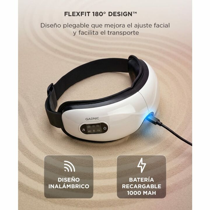 Masajeador de Ojos EyeRelax 3D Gadnic Electrico Inalambrico Vibracion Presion Calor Diseño Plegable Musica Integrada