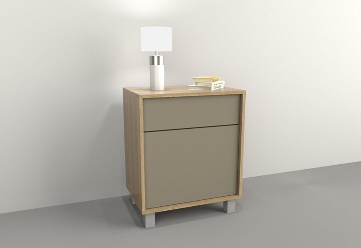 Mesa De Luz 1 Cajon 1 Puerta Olmo F. Gris C. Tables