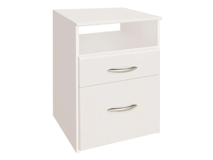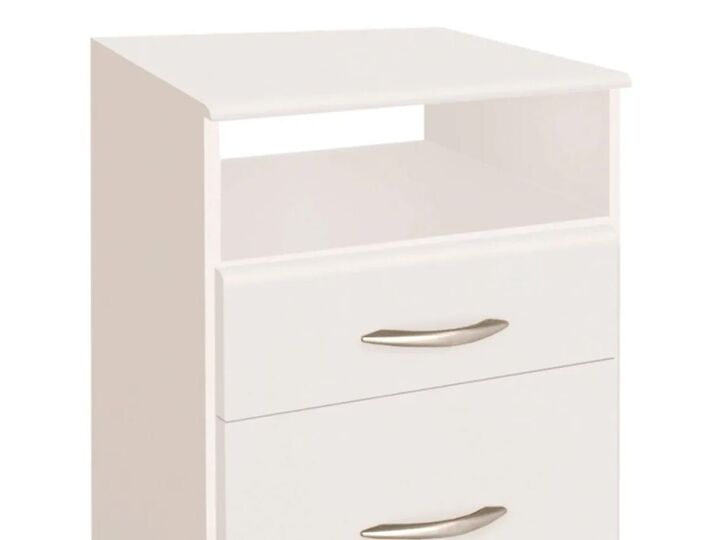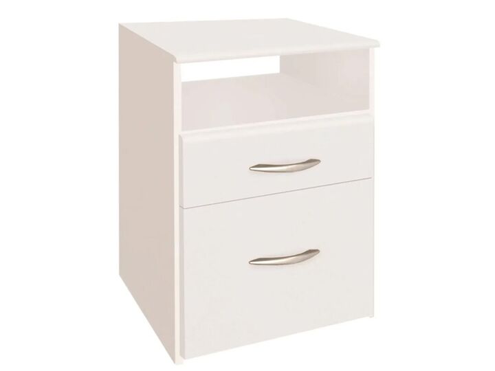 Mesa de luz Un Cajón Un estante Una puerta Perfecta para decorar tu habitación Dimensiones 0,45 x 0,45 x 0,65 cm Color Blanco Entrega Desarmado Con embalaje de fábrica