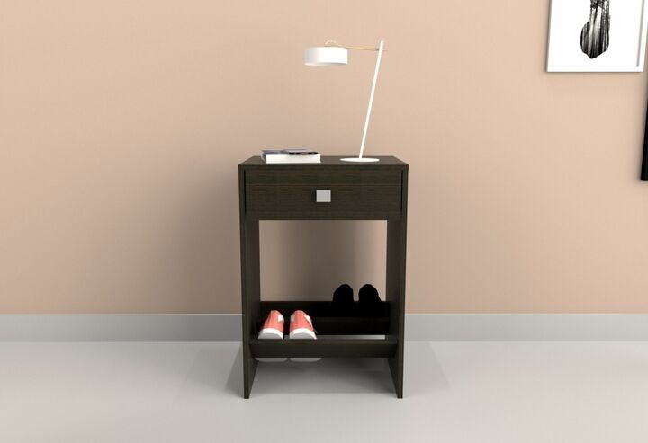 Medidas: Largo 0,45 m - Alto 0,70 m - Profundidad: 0,36 m Cantidad de cajones: 1 (interior totalmente revestido con la misma melamina) Cantidad de estantes: 2 (botinero) Manijas de plastico Peso: 11 Kg. Sistema Minifix-Correderas metálicas IMPORTANTE Los muebles salen embalados en caja con instructi...