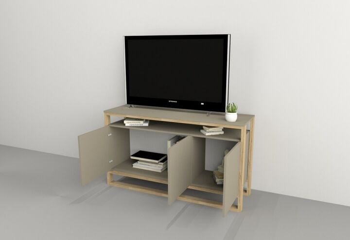 Estructura MDP 25mm Medidas: Largo 1,33 m - Alto 0,75 m - Profundidad 0,40 m Cantidad de puertas: 3 Cantidad de estantes:1 Sistema push en puertas Peso: 38 Kg. Sistema Minifix Bisagras metálicas Melamina de Alta Resistencia IMPORTANTE Los muebles salen embalados en caja con instructivo de armado pas...