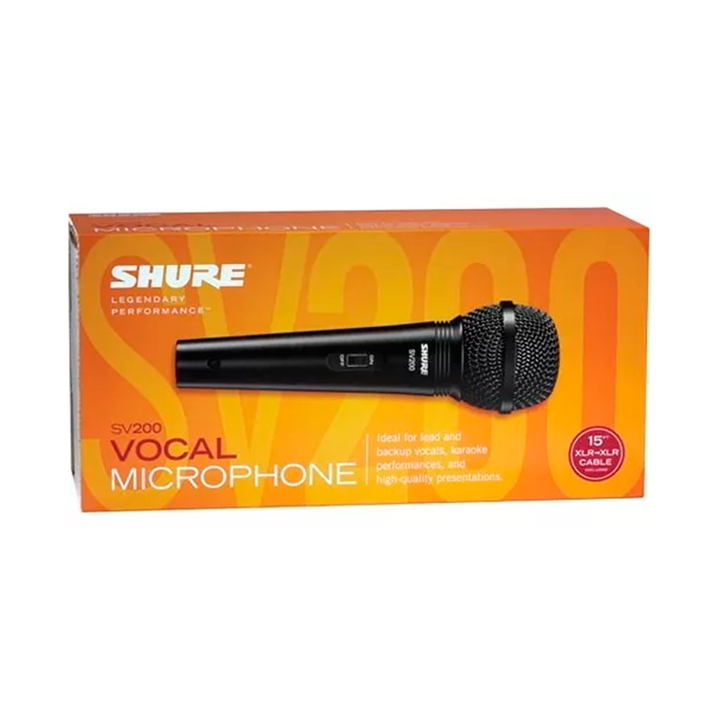 Micrófono SHURE SV200 Vocal Dinámico Cardioide, Switch, cable XLR-6.3 mm, estuche y clip. Regilla reforzada