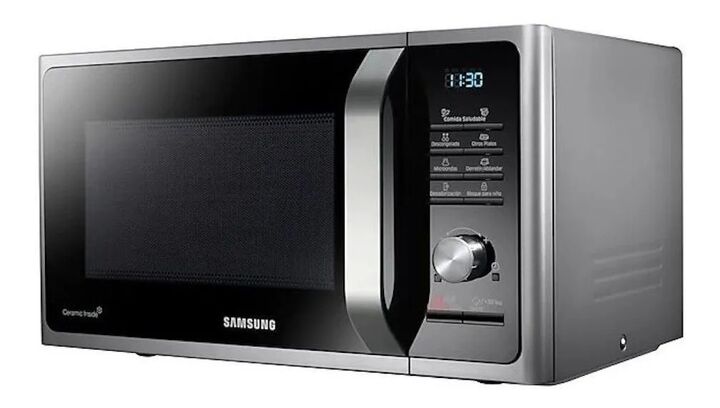 MICROONDAS SAMSUNG MG28F3 28 LTS 900 W 6 Niveles de cocción Interior Ceramico Descongelado rapido 3 menus de cocción automática Traba de seguridad Pantalla digital led Plato giratorio de vidrio Con Grill Color silver Origen Argentina Garantía 12 meses.