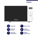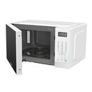 Microondas digital. Capacidad de 20 litros. Color blanco. Potencia de 1100 W. Puerta de vidrio negro. 8 funciones programadas. Display digital touch con bloqueo de seguridad. Incluye función Descongelar, Recalentar y Cocción express. Reloj y timer. Luz LED. Incluye plato giratorio de vidrio.