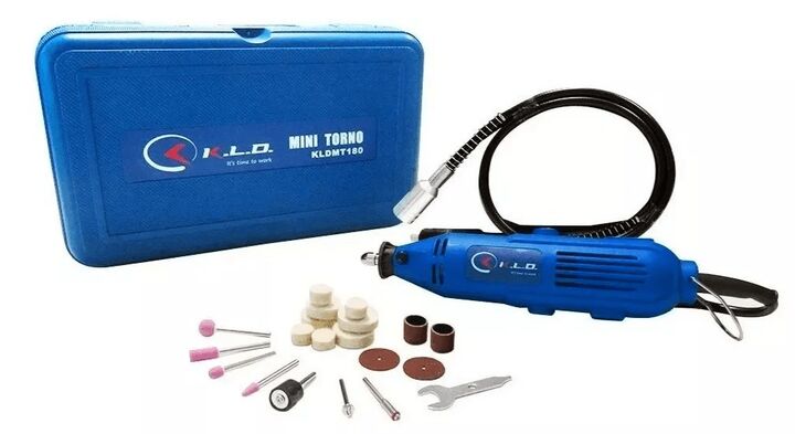 Minitorno de mano con accesorios KLD herramienta manual para las tareas de bricolaje que todo artesano debe tener en su taller. Crea el perfecto acabado en tus proyectos de artesana con solo una herramienta. Este verstil modelo es ligero y cmodo de utilizar. El complejo diseo de tamao reducido permi...