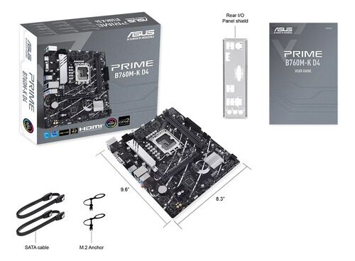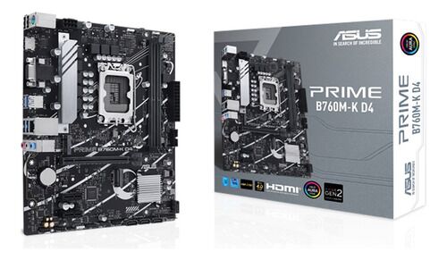 Motherboard ASUS Prime B760M-K D4, Intel B760 LGA 1700 mATX con PCIe 4.0, dos puertos PCIe 4.0 M.2, DDR4, Realtek 2.5Gb Ethernet, VGA, HDMI, SATA 6 Gbps, USB 3.2 Gen 1 frontal, Aura Sync - 90MB1DS0-M1EAY0 Socket Intel LGA 1700: Listo para procesadores Intel de 13a y 12a generación. Conectividad ultr...