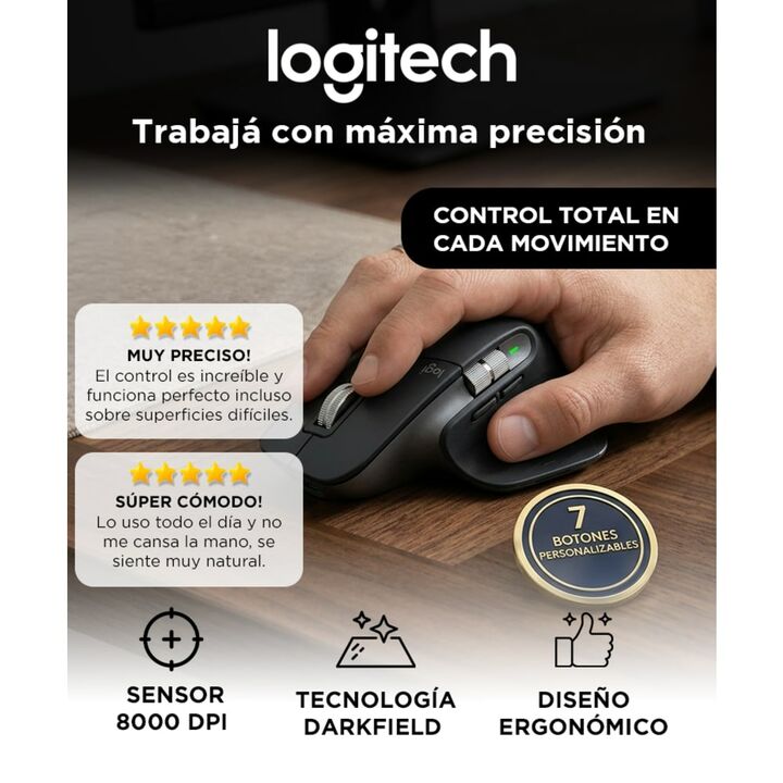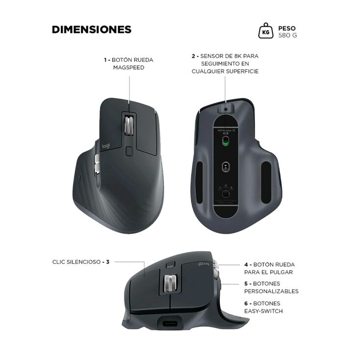 Mouse Logitech MX Master 3S 8000 DPI Bluetooth Ergonómico Sensor Darkfield