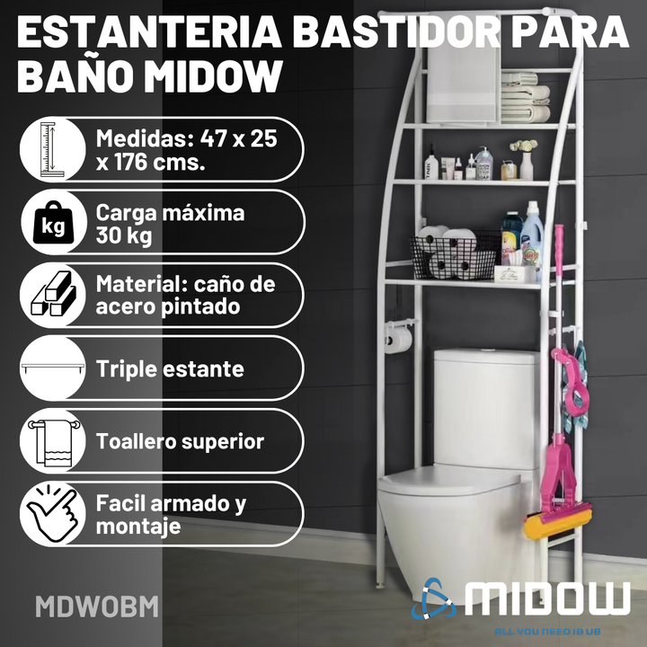 Mueble Organizador de Baño Midow – 3 Estantes sobre Inodoro