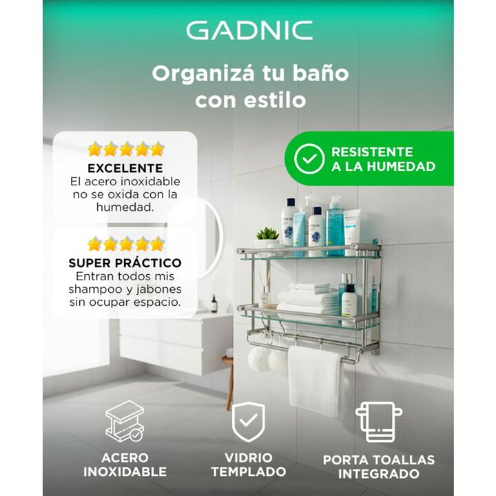 ¡Descubre el Organizador de Baño Repisa Toallero Gadnic! Dale un toque moderno y funcional a tu baño con nuestro Organizador de Baño Gadnic. Este versátil accesorio te brinda una solución elegante para mantener tu baño ordenado y tus toallas al alcance de la mano. Construido con acero inoxidable de ...