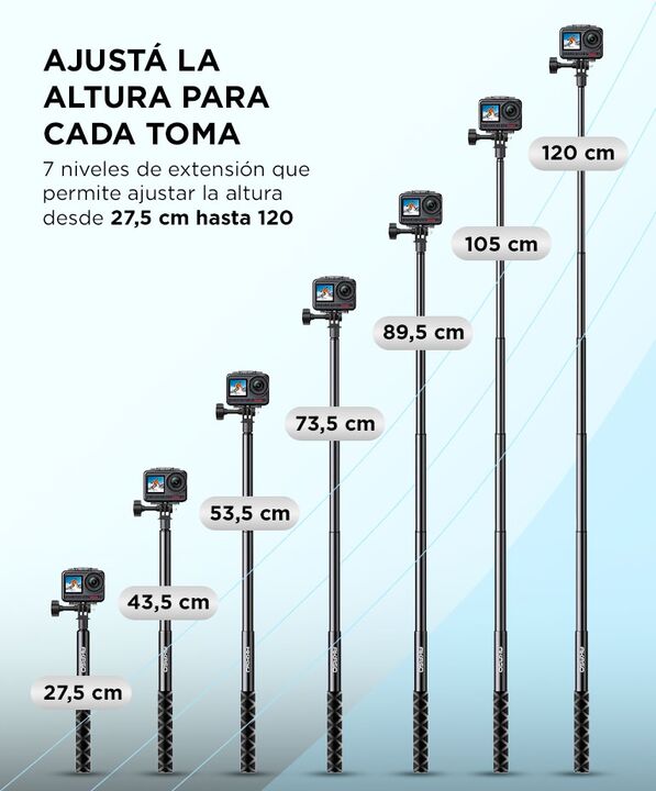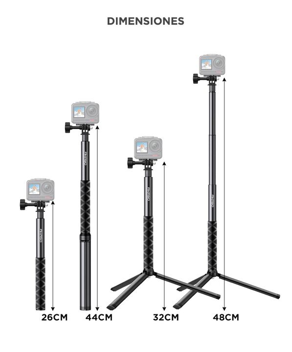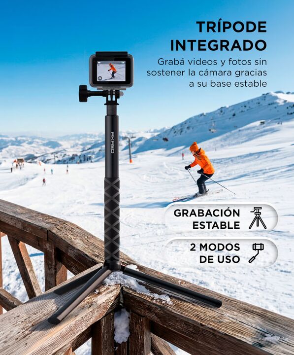 Mayor alcance para capturar mejores ángulos: El palo de selfie Akaso 120 cm permite obtener tomas más amplias y dinámicas al extenderse hasta 1,2 metros. Resulta ideal para viajes, deportes y grabaciones donde se necesita mayor distancia entre la cámara y el usuario. Trípode integrado para grabacion...